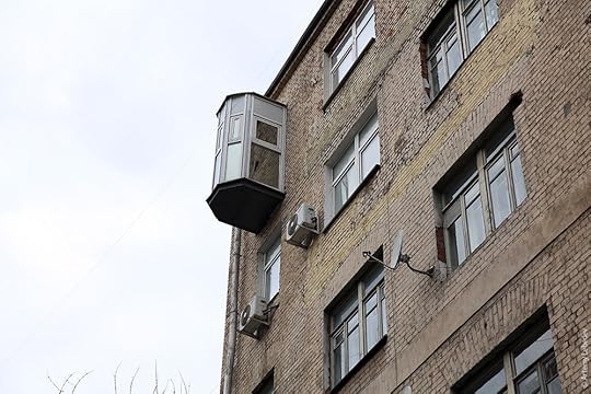 И как раз на углу этих улиц стоит Подозрительное здание. Сначала оно никак не обратило на себя мое внимание. Потом я обнаружил, что какой-то хуй настолько увлекся застеклением балкона, что соорудил в результате космический саркофаг.