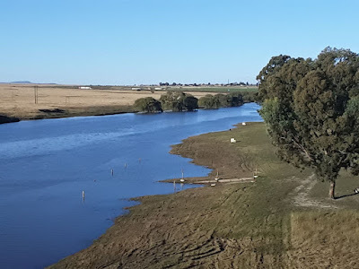 Villiers looked a bit like a ghost town, since the highway now by-passes it, but the volume of traffic can barely manage the toll plaza, and the single-lane bridge into Villiers would never cope. The Vaal River at Villiers looked pretty, so we took some photos.