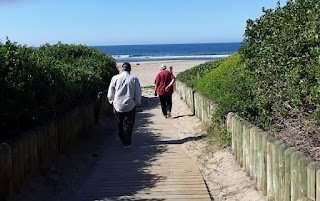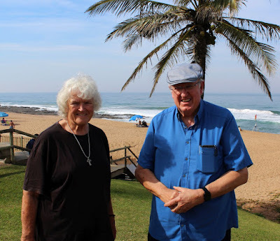 We went on to Ballito, where we called on Peter Gunning, who took us to coffee at a beachside kiosk. We sat on a bench overlooking Ballito Beach and Pete spoke of Bible study groups he had participated in, some of which had old St Martin's people in them, including Alison Bastable, whom he said had wanted to see me, but we did not have her contact info. He talked about the millennialists in Bible study groups who waited for the end of the world, and were fans of Hal Lindsey's The Late Great Planet Earth. I wasn't aware that there were people who were still interested in that, and Pete said that they had changed the ending to put forward things that Hal Lindsey had predicted would happen, but hadn't happened as predicted, so they moved them further into the future.