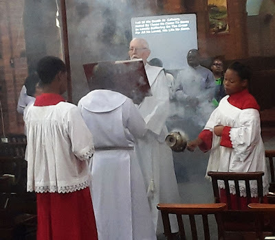 Afterwards John told me something about the arrangement of the stained-glass windows, how they surrounded people with saints, the disciples of Jesus, his friends, and others. We asked the Rector, Themba Vundla, if we would use the chapel to sing the Hours and Obednitsa, and we read our own Gospel of the Samaritan Woman. There are not many Sundays after Pascha left when we can sing the Paschal hymns. so we did not want to miss this one.
