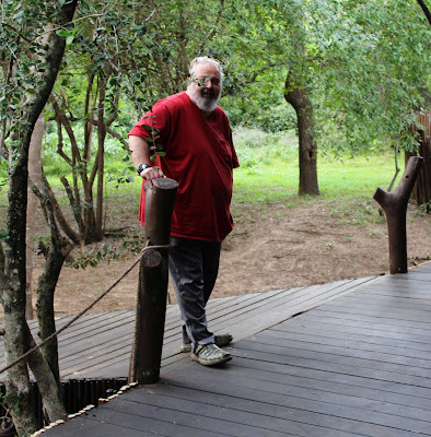 We filled up with petrol for the third time on our trip at Mtubatuba. We drove on to Hluhluwe and reached Kuleni Estate at sundown. We went on to iHlozi Lodge, where our friends Melvain and Lynette Donyes welcomed us and we had supper with them and chatted. Melvain and Lynette had bought iHlozi Lodge out of their retirement savings and run it as a guest house to support them and their ministry as evangelist/teachers in the Pentecostal tradition. Melvain was one of the pioneers of online communications in South Africa, having set up one of the first BBSs and importing some Christian networks. One of the forums we started back then is still functioning, now as an email mailing list. It's called Offtopic, because it's a relaxed sort of place where you can discuss things that might be considered "off topic" in more specialised online forums. If you know us and would like to stay in touch, feel free to join us there -- you can find out more about it here. And if you're looking for a place to stay in northern Zululand near the coast, click here to find out more about iHlozi Lodge.And for more places to stay run by our family or friends, see here.