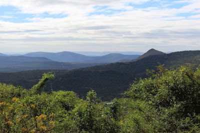 On Thursday 22 May we said goodbye to Mel and Lynette and headed for home, and again had problems with poor road signage. Perhaps the roads authorities think that road signs are not needed because nowadays everyone listens to the plastic auntie giving directions on GPS, but we found that doesn't work too well, at least not on our cell phones. It shows you approaching a turnoff, but by the time is shows you have reached it, you've already passed it, so the signs would be useful. So we drove up the N2 for about 5 kilometres looking for the R69 to Vryheid, and had to turn back. It turned out to be a rough gravel road, but soon climbed into the hills with some spectacular views over the Pongola Dam.