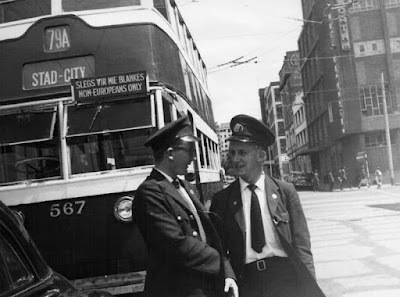 In 1961 the Johannesburg Transport Department had three-way apartheid. There were buses for "Europeans Only", buses for "Non-Europeans Only" and buses for "Asiatics/Coloureds Only".