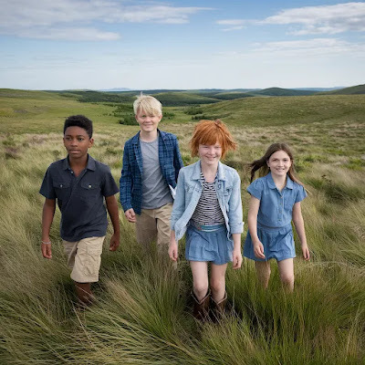Now the first book in the series, which went under the title Of Wheels and Witches, is out of print, but a second edition is in the press now. One of the things it needs is a cover illustration, and I was thinking of how to describe the kids for an illustrator. I started by describing them to an AI app, and after about 7-8 attempts it came up with this, which represents fairly accurately how I and some of the readers pictured the kids.