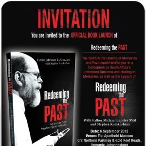 Last night Val and I braved the rain and the traffic to travel to Johannesburg for the launch of Fr Michael Lapsley’s book Redeeming the past. It took us three hours to cover the 85 kilometres, but it was worth it.