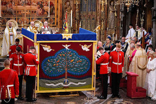 But in this, actions (as in liturgy generally) speak louder than words. The coronation procession was led by a cross. Two shards of wood given by Pope Francis, shards that the Vatican says are from the “True Cross” on which Jesus Christ was crucified, had been incorporated into this new processional cross.Things strike people in different ways. We see what we want to see. The symbolism of the cross in the ceremony, for example. To some the symbol of the cross above the orb symbolises Christianity as a conquering imperialist religion, embedded in colonialism, going out to conquer the world. But in the context of the coronation rite as a whole, it appeared to me in its true light, that Christian kings (as the rite assumed Charles is) are to rule in the spirit of Jesus as he explained to James and John: The rulers of the nations lord it over them, but it is not to be so among you. Christians often get it wrong, and invert this, falling back into the way of the world (if you want to see just how wrong Christians can get it, there's a good example here: Beware the Christian Prince).