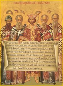 It is the Afterfeast of the Ascension, and the commemoration of the Fathers of the Seventh Ecumenical Council. The Gospel reading is from John 17, the prayer of Jesus for those who would lead the church after his ascension. The epistle reading is St Paul’s address to the elders of Ephesus. and both emphasis that teaching has been entrusted. The word the Father has entrusted to Jesus he has passed on to the twelve, who have all kept it, except for the Son of Perdition, Judas.