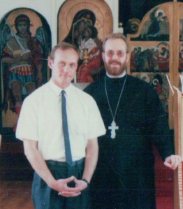 Fr Bert (Iakovos) Olechnowicz came from the USA in 1988, and left at the end of 2001. There was again a problem of no priest, and Fr Mihai Corpodean, who had come to serve the Romanian community, but had no church, came to help us, and most of the Romanians joined in. When he left, Fr Athanasius again came, initially in a temporary capacity, along with various other work he was doing, but gradually became more permanent, as described above.