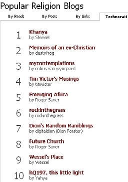 One problem is that I'm not sure how accurate the Amatomu statistics are. The blog at No 3, Dion's random ramblings, is inactive, and so should have dropped a long way down the list. Dion Forster's new blog, An uncommon path remains inexplicably stuck below it at number 7, even though he posts to it regularly.
