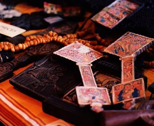 We wondered about the people who did actually buy such things, and clearly lots of people did, because when we visited later a lot of the church items had gone. Ikons and crosses were not the only thing; there were also well-used liturgical books, presumably in Ge'ez, and censers that appeared to have been home-made.