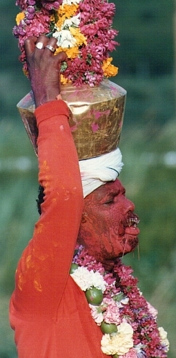 Next is the dancer of Kannur. There is a troupe of dancers who travel around villages portraying the stories and activities of the gods, and in the course of the performance they are possessed by the spirit of the god, and become the god, so that the dance is as much an act of worship as a dramatic performance.