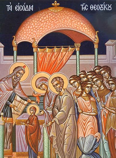 But after St Philip and St Matthew comes, on 21 November, the feast of the Entry of the Most Holy Theotokos into the Temple. It's one that probably would make most of my Protestant friends a little uneasy, if they were aware of it (which most of them aren't). You see, it isn't scriptural. You can't find it described anywhere in the Bible. For some Protestants, if it wasn't in the Bible, it never happened, just as men never went to the moon, or nobody uses cell phones, so the Theotokos never entered the temple. If it had happened, the Bible would have said so.