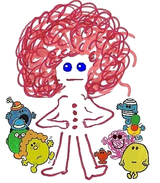 Then they met, Mr Happy, who didn't look happy at all, and Mr Nonsense who didn't look any different. "We're going to see St Margaret about it all", said Mags, before they could get an un-happy or nonsense word in. "ACTually, I know her .. We're related .. WELL ACtually, she's my Grandmother. She'll sort this."