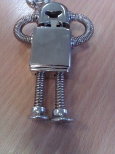 However, I have learned my lesson with regard to backing up. This little guy in the picture was one of my stocking stuffers. I call him Robbie. He's a USB flash stick with 8GB of memory. I have copied over all my WIPs onto him, and I carry him around everywhere. Every time I write more words, I copy them over straight away.