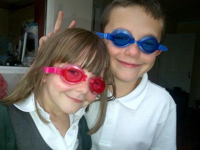 Alex obviously decided before we got there that he was going to have a real attempt at killing me. Apparently missing a beat wasn't good enough for him anymore, he wanted me to actually keel over completely. Ducking under the water while there was no one to supervise him at the end where he was, not holding on to the side, trying to swim by himself and encouraging Gracie to go under as well. Those goggles were a bad idea!