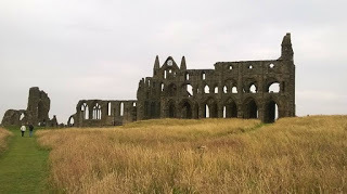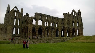 My husband's grandmother lives in Yorkshire, a beautiful part of England's countryside. I've been there a few times but, recently, I got to fulfill an ambition. My parents-in-law took us to Whitby for the day and I finally got to see the ruins of Whitby Abbey, up close and personal.