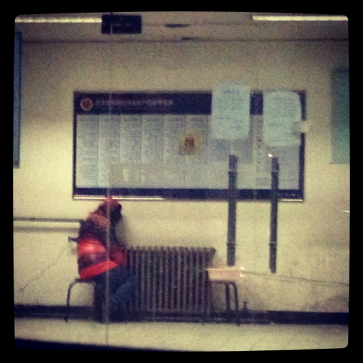 Some snapshots from Beijing, taken tonight over a 4 hour period from 5 pm to 9 pm. The first photo was shot at a bus stop — the second, at a gas station, where the attendant was a young girl: cold and alone, and trying to stay warm by the heater.