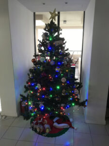 Yes, the Grinch is popping Christmas balls into our Fijian Kava bowl on the dining table.