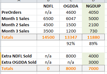 NDFL unit sales by month. Pre-Orders were May, June, and July