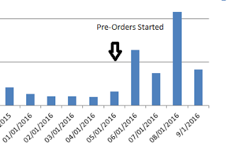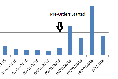 Pre-Orders - FANTASTIC. We sold thousands of additional copies of Nice Dragons and One Good Dragon the moment pre-orders went up and those elevated sales lasted from May to mid-October. (Though May doesn't look like much since pre-orders only ran for the last 5 days of that month)