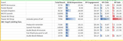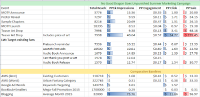Paid Ads - Lastly, we had a lengthy schedule of paid ads via Facebook and Amazon Marketing Services. There were hundreds of ads, so I'm going to talk about the aggregate rather than individual ads. Basically we did ads for everything you see above. Whenever we did something, like announcing sample chapters or teaser art, we also pushed out boosted posts. The AMS ads were all targeted at people who were past customers since this was a book 3 release.