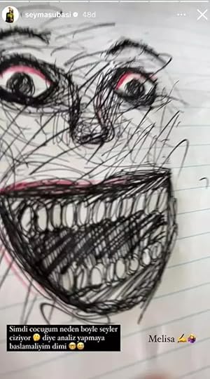 Instagram hesabından resmi paylaşan ünlü isim, adeta korkuttu. Subaşı paylaşımına, “Şimdi çocuğum neden böyle şeyler çiziyor diye analiz yapmaya başlamalıyım değil mi?’ notunu düştü.