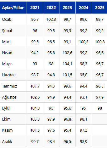Ekonomik güven endeksinde son 5 yılın aylık verileri şöyle: