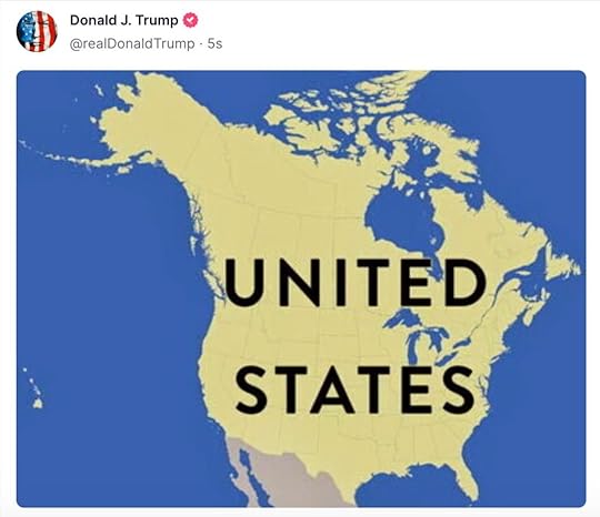 Uzun süredir Kanada’nın ABD’nin bir parçası olması gerektiğini savunan Trump’ın paylaştığı haritada, Kanada ve ABD tek bir ülke olarak görülüyor.