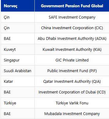 Dünyanın en büyük varlık fonlarının isimleri ve bağlı oldukları ülkeler şöyle: