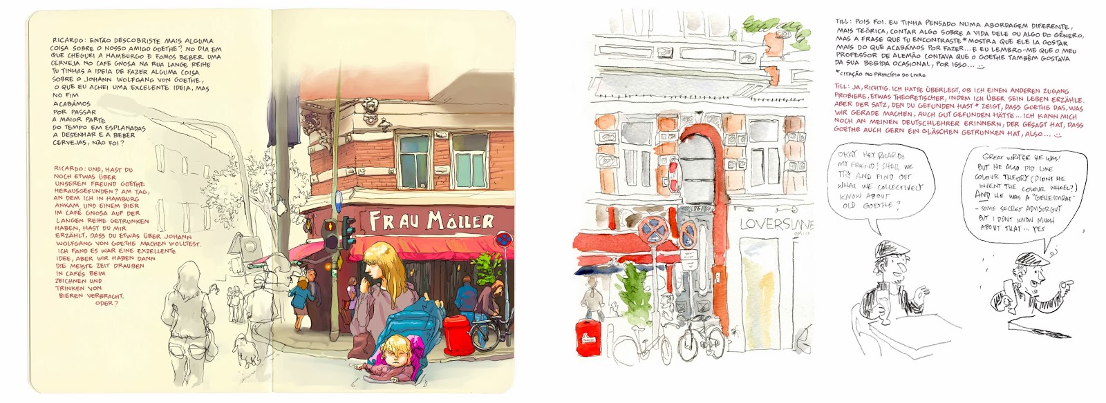 “A minha cidade vista pelos teus olhos” foi o tema que deu o mote à residência artística organizada pelo Goethe-Institut Portugal, na qual participaram quatro artistas do grupo Urban Sketchers, cuja paixão é desenhar locais. O projecto, que decorreu em 2012 e 2013, contou com duas residências anuais e ligou as cidades de Lisboa, Porto, Hamburgo e Berlim, cidades natais dos quatro artistas: Ricardo Cabral e Till Laßmann (2012) e Marco Mendes e Bo Soremsky (2013)."