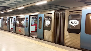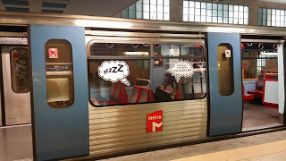 Uma versão do cartaz no metro de Lisboa, e uma intervenção nas janelas do metro a publicitar o Festival.