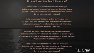 Butterflies flutter inside her, the music takes her deeper and deeper into her day dream. She closes her eyes, leans back in her office chair and with the tips of her fingers she lightly touches her forehead, imaging it’s the soft, warm touch of his beautiful full lips. She moves her middle finger between her brows and down to the tip of her nose and pauses. She can see him clearly now in her mind. His forehead rested upon her own and his dark eyes staring into her own, his warm breath upon her own lips, the tip of his nose pressed against hers. One hand cradles her head, while his strong thick thumb slowly rubs against her jawline. She can feel him peering into her eyes, deeply, beyond her hazel irises and into the very depths of her soul.