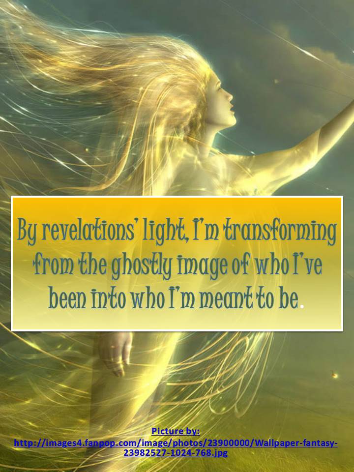 By revelations’ light, I’m transforming from the ghostly image of who I’ve been into who I’m meant to be.