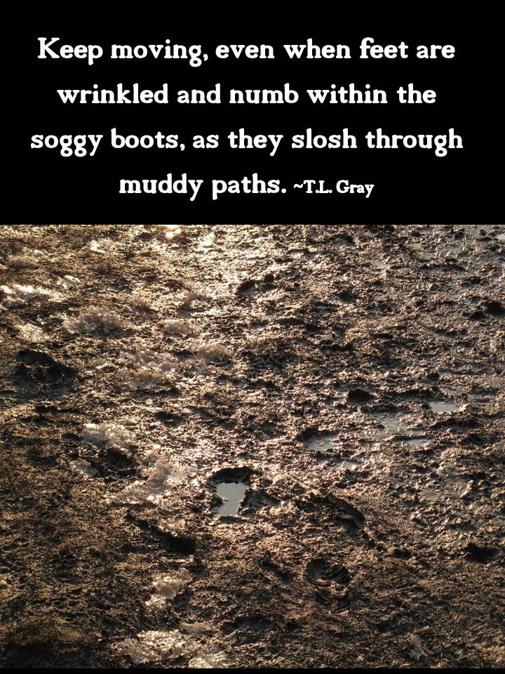 Heads must remain high amongst the throngs of naysayers, those who shout their insults against the mere belief that the possibility exists. Don’t blink, even when rain drips from lashes and stings the eyes and blurs the vision. Keep moving, even when feet are wrinkled and numb within the soggy boots, as they slosh through muddy paths. A promise doesn’t come by magic – a simple snap of the finger. It comes by faith – through trial and testing.