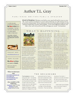 T.L. Gray's debut novel "The Blood of Cain" was released October 2009 from Fireside Publications. The sequel, The Arcainians, is due for release early 2011. T.L. Gray is an active member of the Carrollton Creative Writers Club, Deeper Life Christian Center, and is a contributing writer for Impact Times Magazine. The author lives in the foothills of the Appalachian Mountains of West Georgia. When asked as a child what she wanted to be when she grew up she replied, "A Queen". Since that title isn't available within a democratic republic, she has settled for the label of "Author" instead.