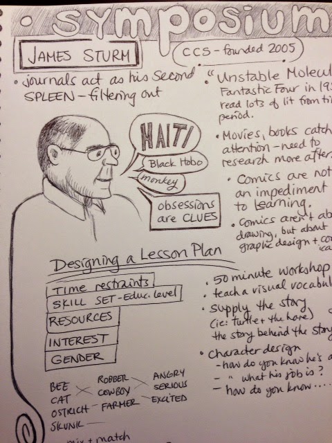 Then, it was time for Part Two of the comic adventure. This one is more theory, not drawing. The Symposium for Applied Cartooning is geared toward teachers and librarians and how to use comics and cartooning in the classroom. I am really intrigued by "Applied" cartooning and want to learn more about it.