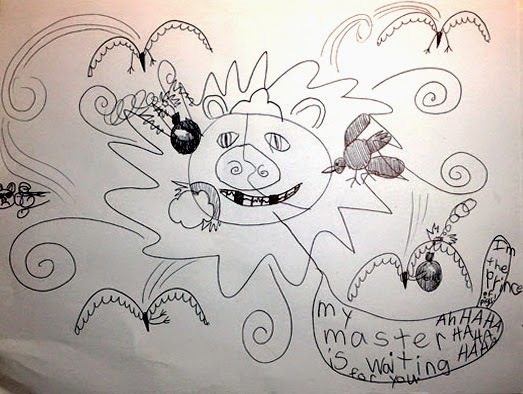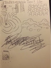 My journal has become a joint venture with everyone adding their doodles. My mom drew an entire page with Lilah and me as the focus. I have no idea what the other things are on the table?