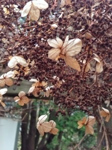 As I look out the window now, there are green leaves starting to hide these old, dry petals and new white buds forming.