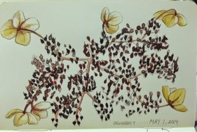 I was inspired to draw these flower remnants in watercolor and Micron pen...