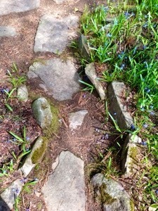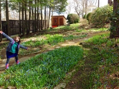 Just one week later, there are little blue flowers everywhere! Lilah and I are in love with the secret forest garden behind the apartment. I want to create one like this at home. The dirt paths meander around and between rhododendrons and past a little yoga-tea-house, over a bridge and through a Japanese gate...