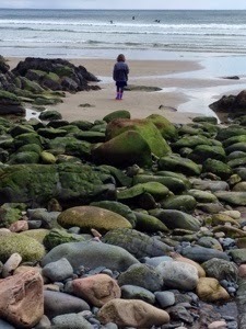 Yesterday, it was so warm and beautiful, we took one more walk by the water before she headed back to New Hampshire with my mom. There were lots of surfers out, and tourists too. I always forget that the weekends bring tourists. Today it is quiet and calm again. But I also miss my daughter. She has the most amazing way of looking at all the same things that I see everyday and finding the magic in them.