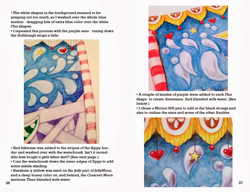 The image for the "card" grew... so I decided to take step-by-step photos of the decisions and process. I took some more photos as I added the shading... then Lilah (my little Art Director) said to do it over in color (!?) So, of course, I did. More photos. "Hmmm," I thought, "maybe you folks would be interested in seeing the steps involved?" So I laid it out in InDesign and made a pdf. And it turned out to be 35 pages long. Whoa. So I added tips and instructions and thoughts... and it kind of turned into a little book.