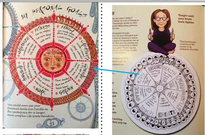 Austin Kleon says, "Don't just steal the style, steal the thinking behind the style." In the example of the houses in a circle (my "Flores de Casa") - good god, Carolyn did a beautiful job of drawing houses!! But she misses the point. First of all, that is totally NOT a "doodle" - that's "art"!! And just by putting it there, doesn't mean her reader will be able to draw it. It's kind of... showing off. The thinking behind the style in my books is to empower the reader to try stuff and then create their own work. I give enough steps to show how to get started and a finished piece that doesn't intimidate. And in many cases the reader will say, "cool idea, but I can do it better." YES! That is what I want.