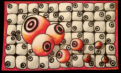 This final Challenge features Gewgle, which is a play on words ("google" as in the wiggley eyes). Although these don't necessarily have to be eye-like... And don't worry about trying to get perfectly round circles. The slightly lumpy look just adds to the sense of realism! hee hee (eeew!?)