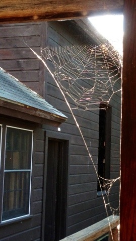 I chose the less private, but less-spidery outdoor showers this morning. I have to admit it was an interesting experience to shower early in the morning, outside, watching the fog rise off the lake and my own breath steaming in the sun. Brrr.