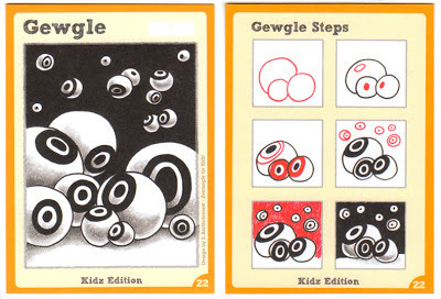 Gewgle is from the Kidz Edition card pack. Don't let the "Kidz" in the name fool you. This pack of cards has tons of great, non-juvenile, patterns in it. The "Kidz" just means that there are some Lilah Beans integrated into the pack. The Tangle card packs can be pre-ordered .