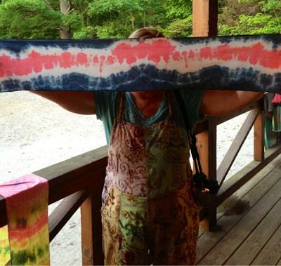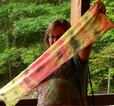 Since I ended with the "dye-ing on the beach" last night, I'll show you what the scarves looked like today...