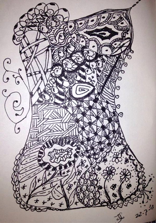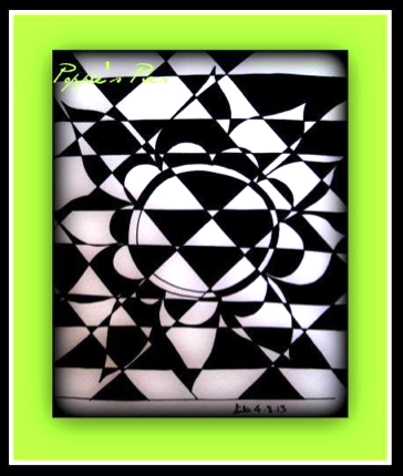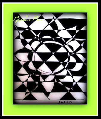 Maya Hardcastle - "Kaleid-ohm"Maya's piece is simple and yet really plays up the fun "trick" of hiding another image inside Kaleido.(Maya let me know where you would like me to send your brand-spankin'-new pack of Tangle Cards!)