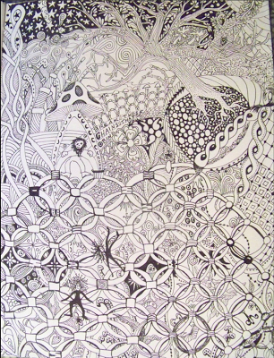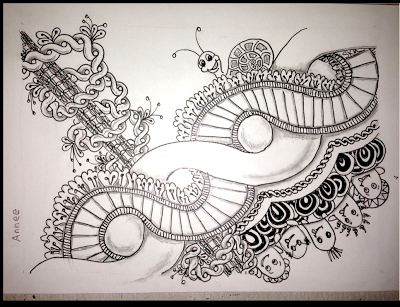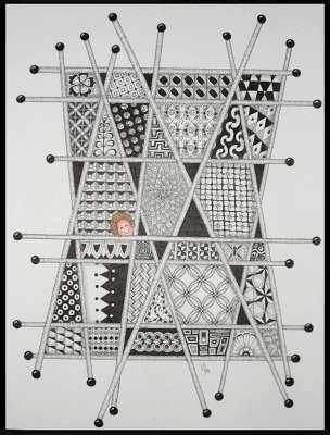 Although it was created using colored pens, this piece looks like a quilt - the inspiration for the tangle itself. And as if this piece is not mind-blowing enough on its own, Becki's entry for last week's challenge, Annee, had my jaw dropping to the floor too.