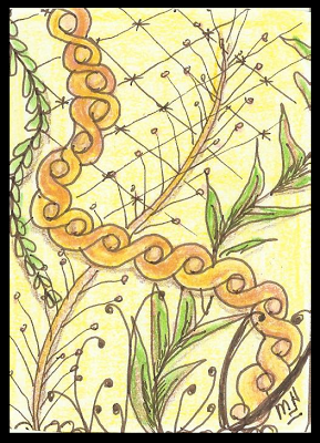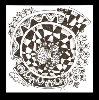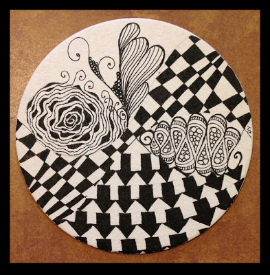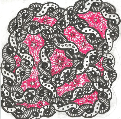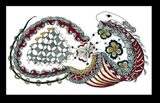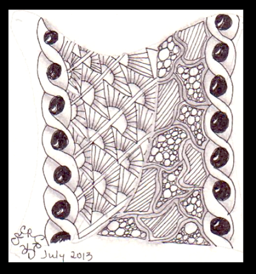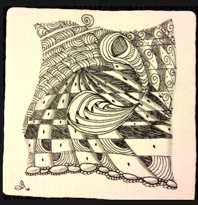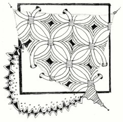 For this week's Challenge, we are going to do things a little bit differently. I will be away at Art Camp next week so I won't be able to choose winners and post the art. I'll be on a little island in a lake, doing arts and crafts. :-) (YEAH!) That means, I am going to give you a harder... or more "interesting"... tangle, and you will have TWO weeks to work on your entry. Sound good? To make it even better, I will choose TWO winners. Well, I will choose one, and YOU all will choose the other by popular choice on the Facebook Page.